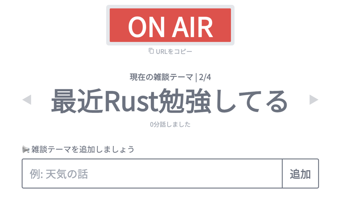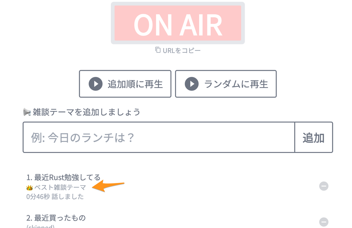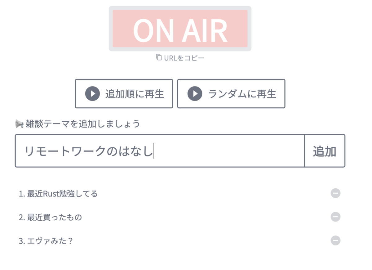 実際に話すときは、追加順 or ランダム再生で、1個ずつトピックを表示してくれる。